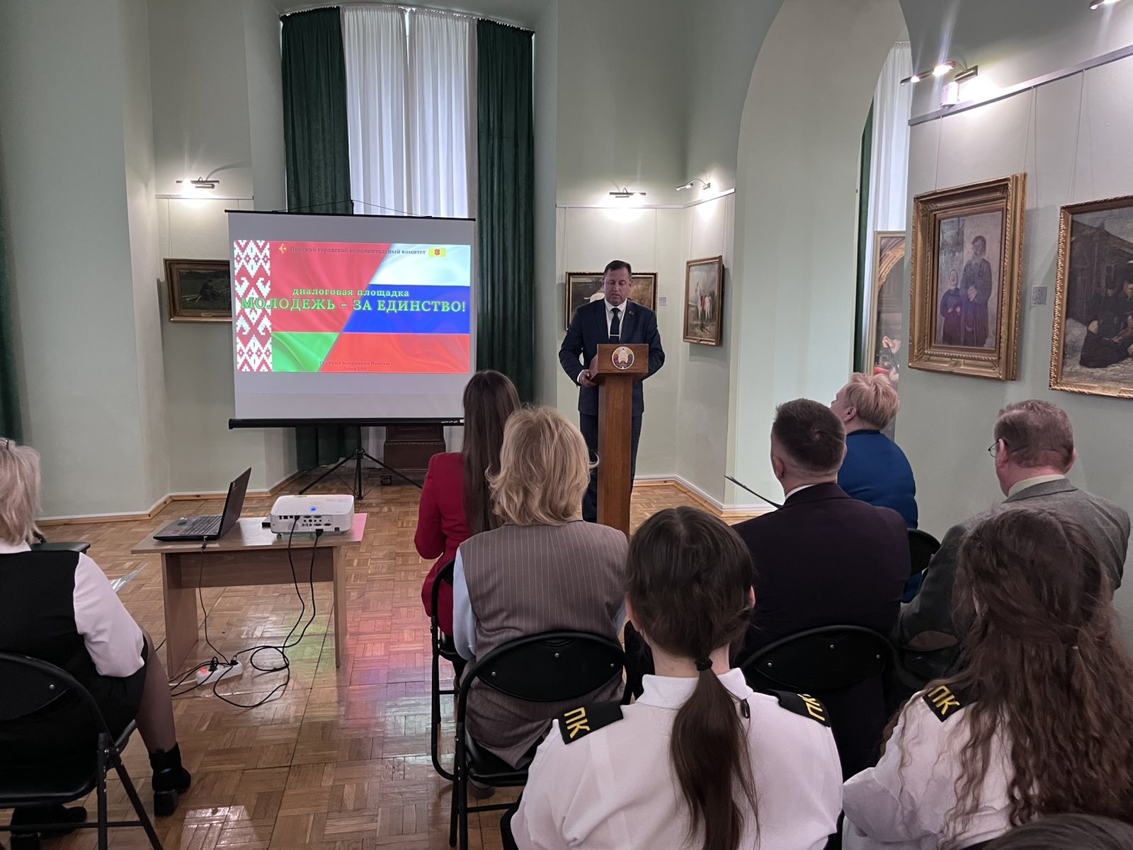 2 апреля учащиеся нашего колледжа приняли участие в Диалоговой площадке «Молодёжь – за единство», которая была приурочена ко Дню единения народов Беларуси и России. В ходе мероприятия старший научный сотрудник Музея Белорусского Полесья Александр Оржеховский рассказал о городах-побратимах Пинска из Российской Федерации, их истории и культуре. О взаимодействии ПолесГУ с вузами России говорили заместитель декана по идеологической и воспитательной работе факультета экономики и финансов ПолесГУ Юлия Голякович и старший преподаватель кафедры социально-гуманитарных дисциплин и межкультурных коммуникаций Леонид Ярошевич.