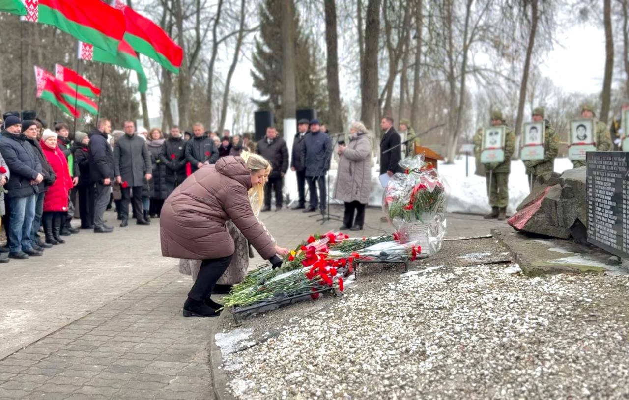 Колонна участников проследовала по улицам Ленина и Куликова к парку, где у памятного знака воинам-интернационалистам состоялись митинг и церемония возложения цветов.