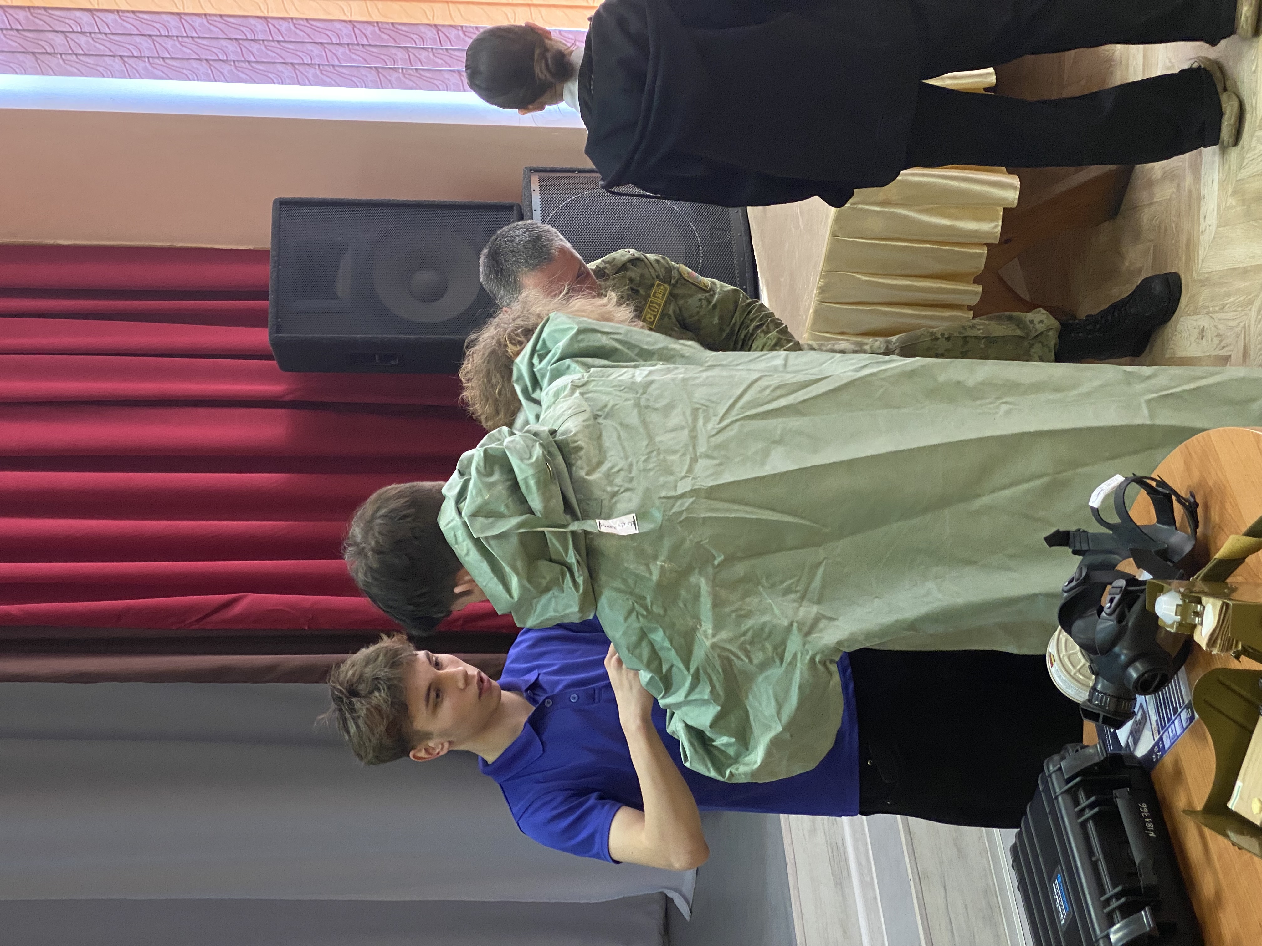 10 апреля на базе колледжа прошло мероприятие «40 лет после Чернобыльской трагедии», организованное представителями Пинского пограничного отряда. В ходе встречи сотрудники службы радиационной, химической и биологической защиты познакомили учащихся с вооружением и техникой своей службы. Обучающиеся получили возможность примерить индивидуальные средства защиты и увидеть в действии приборы радиационного и химического контроля, используемые пограничной службой.