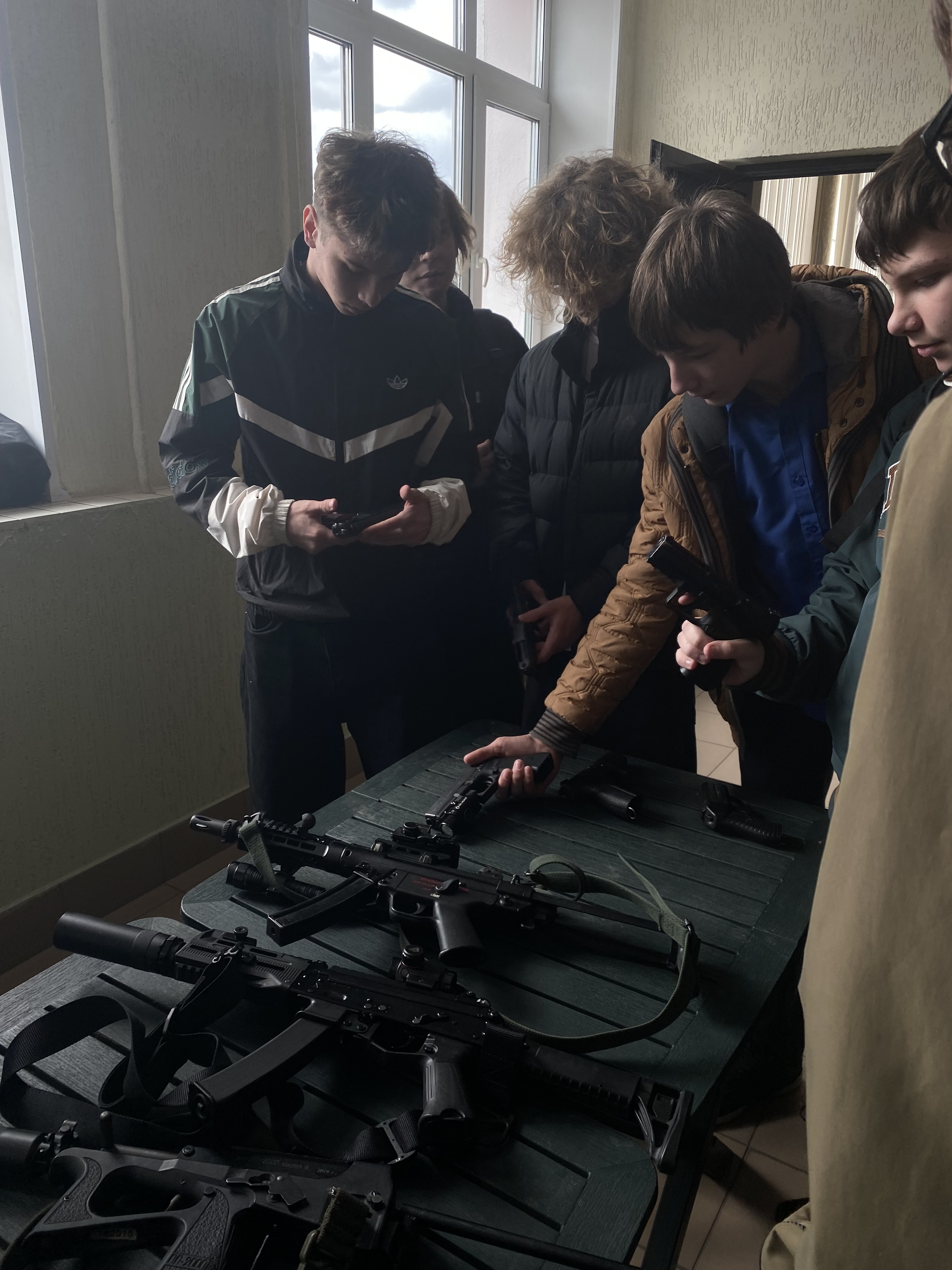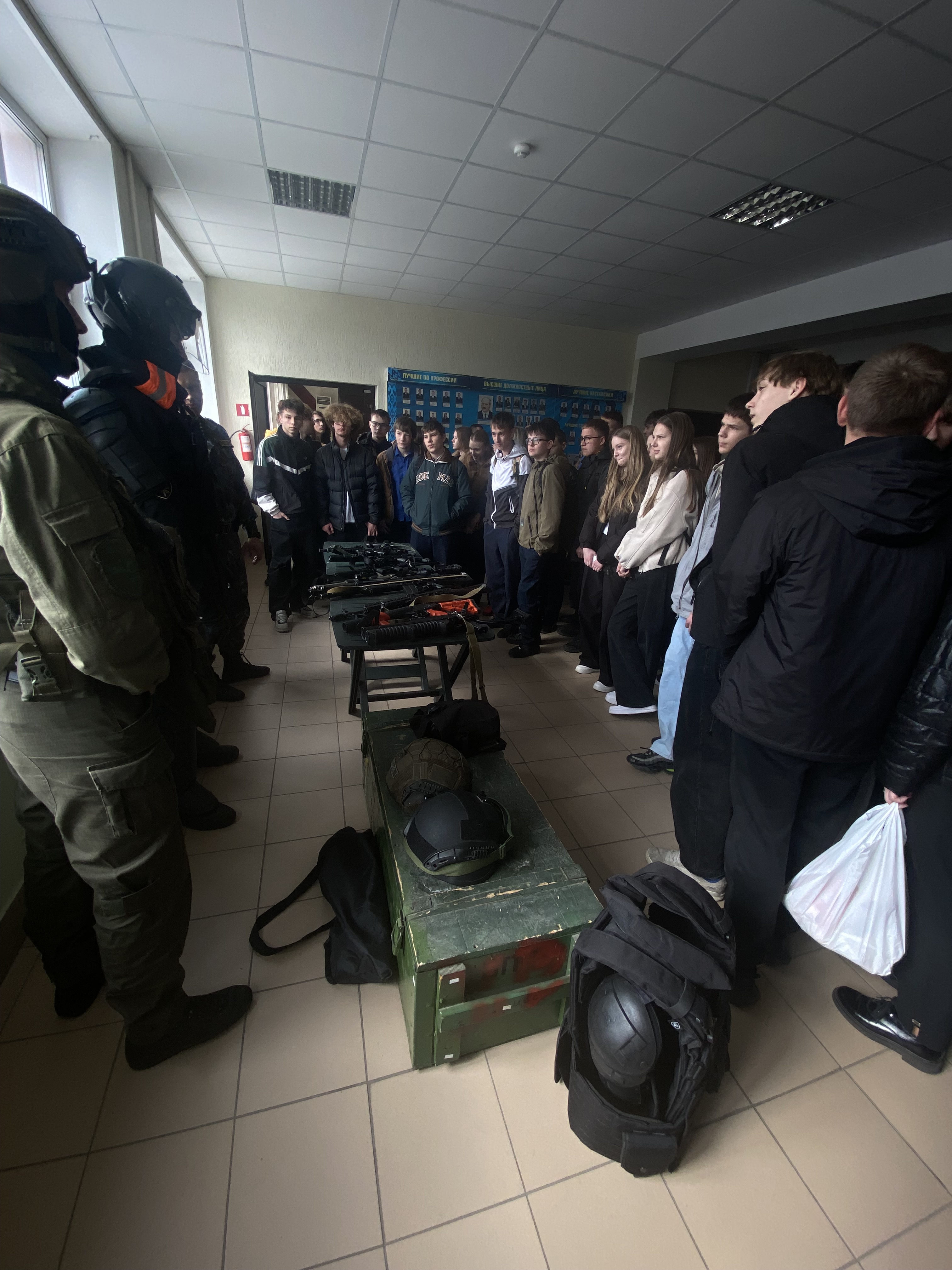 В завершение встречи представители подразделения Пинского ОМОН продемонстрировали вооружение специального подразделения. Учащиеся получили уникальную возможность ознакомиться с боевым оружием, задать интересующие вопросы и сделать памятные фотографии. Мероприятие способствовало повышению правовой грамотности и формированию ответственного отношения к безопасности среди молодежи.