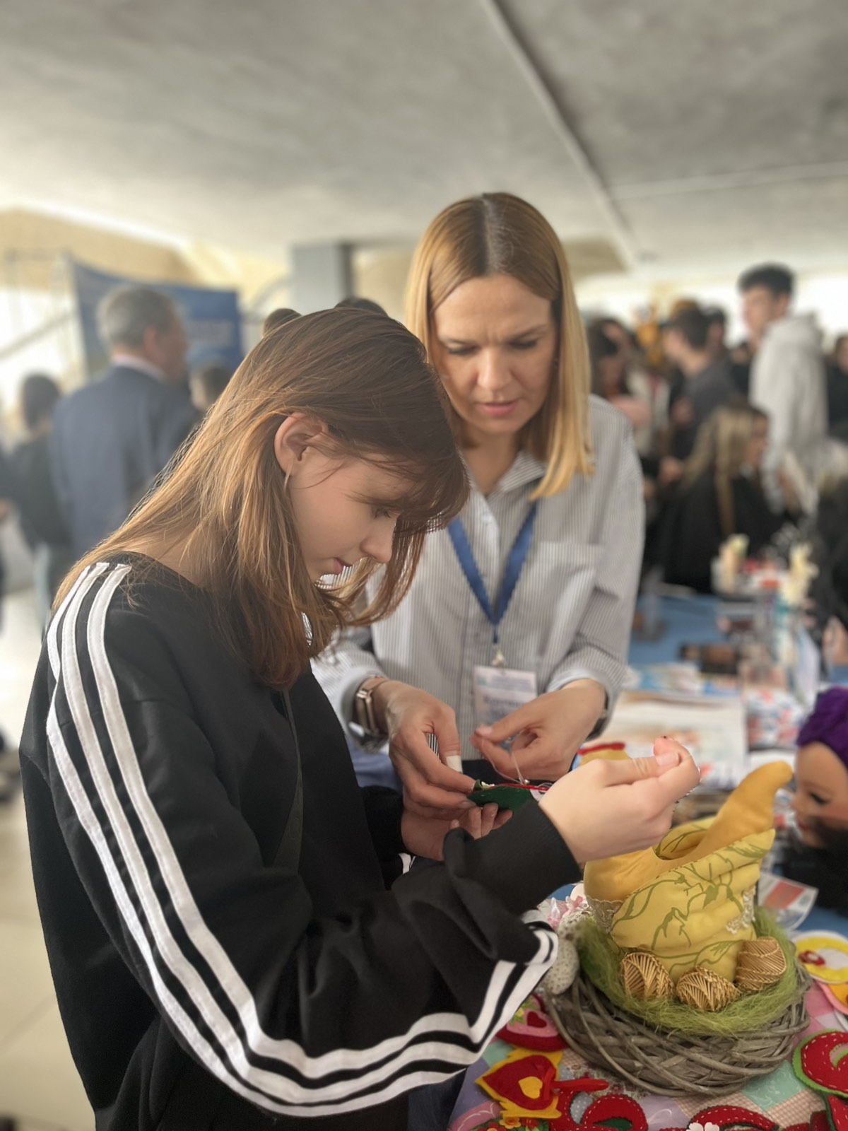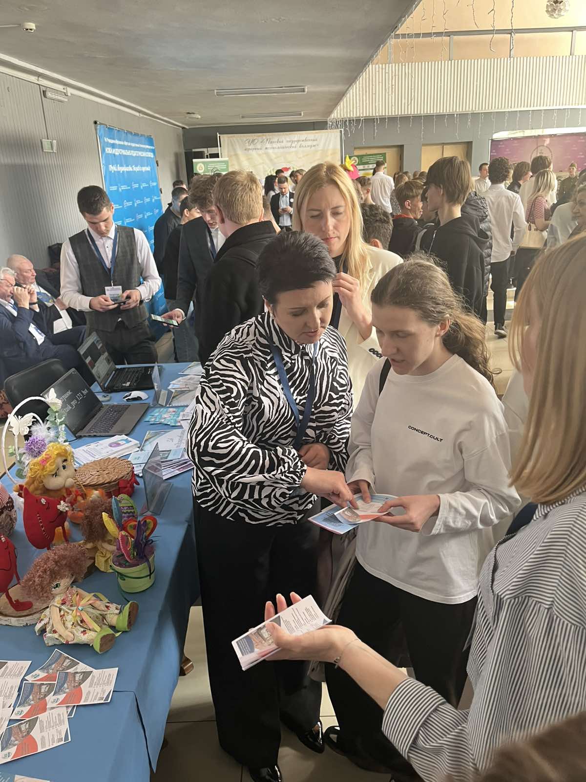 15 апреля наш колледж активно участвовал в Дне профориентации молодежи города Пинска «Будущее страны в твоих руках». Для гостей этого мероприятия, на котором присутствовали сотни школьников, их родителей, педагогов, были организованы интерактивные формы работы от нашего учебного заведения. Особое внимание посетителей привлекли мастер-классы по таким профессиям, как швея, парикмахер, визажист и техник-программист. В формате беспроигрышной лотереи была организована продажа продукции, изготовленной обучающимися нашего колледжа. Кроме того, все желающие могли ознакомиться с профориентационными материалами колледжа — яркими буклетами и информационными листовками, подробно описывающими план набора на 2026 год. В течение работы площадок наблюдалось большое количество заинтересованных людей.
