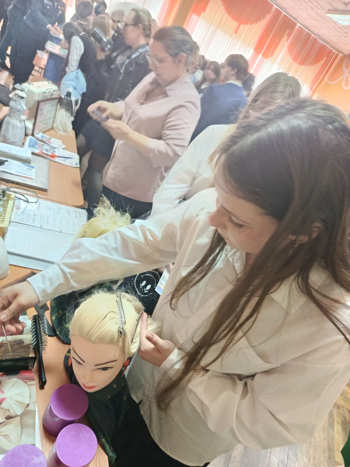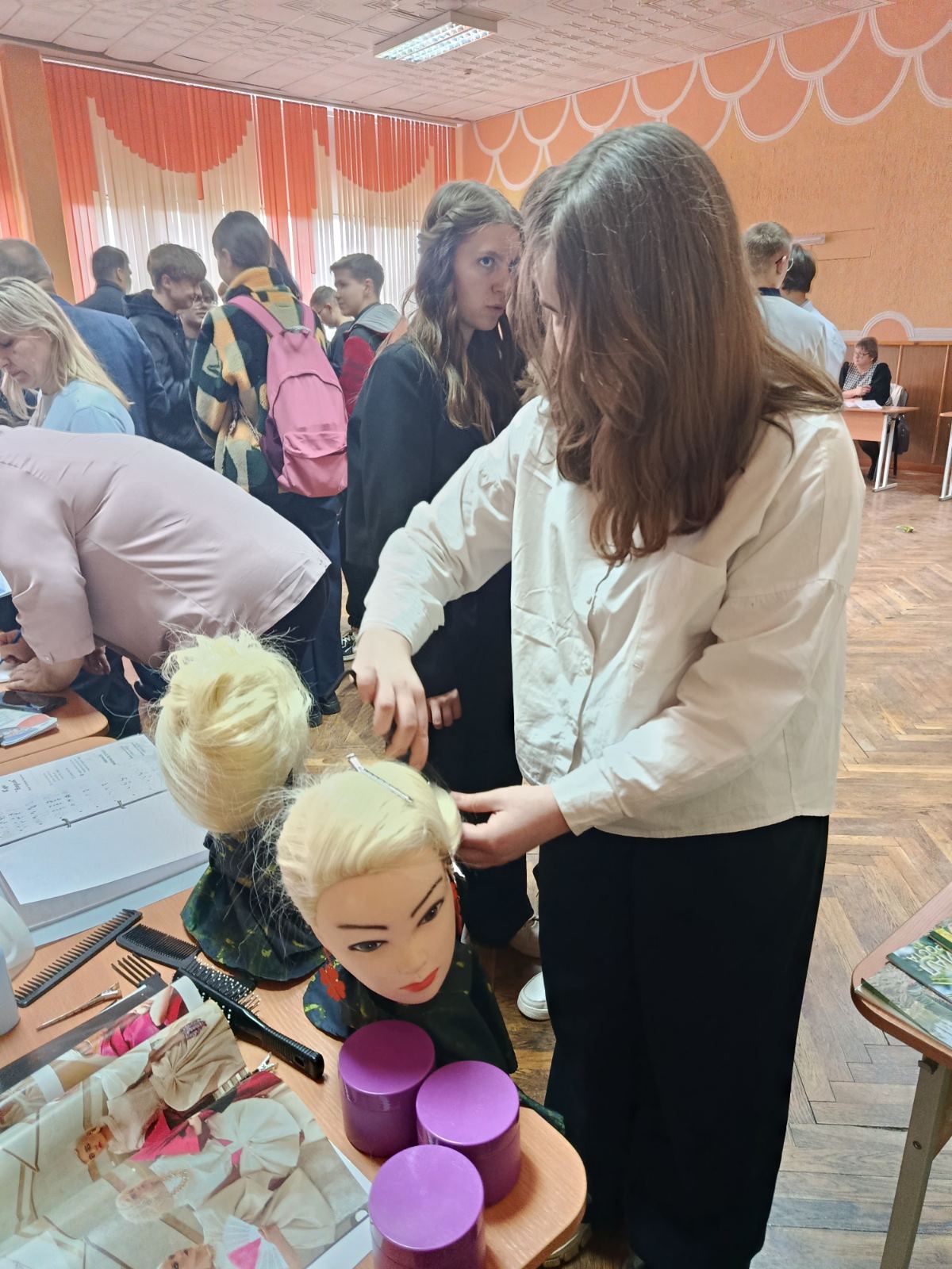 15 и 16 апреля педагоги нашего учебного заведения приняли участие в общереспубликанской акции «Молодежная ярмарка вакансий», которая прошла в Ивацевичском районе. Мероприятия состоялись в Ивацевичской средней школе №3 и Телеханской средней школе имени К.К. Рокоссовского. Для учеников 9–11 классов были организованы интерактивные мастер-классы от колледжа по востребованным профессиям: швея, мастер по маникюру и парикмахер. Школьники не только узнали о профессиях, но и попробовали свои силы на практике, что помогло им лучше понять, подходит ли им выбранное направление. Также представители колледжа рассказали о плане приема и правилах поступления в 2026 году.