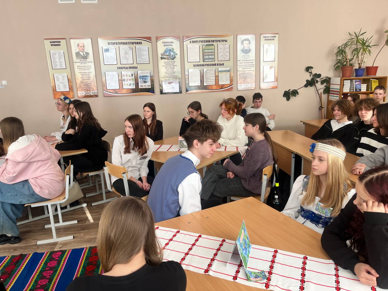 Навучэнцы праверылі свае веды, напісаўшы дыктоўку "Роднае слова". У кабінеце беларускай мовы была арганізавана падборка выказванняў знакамітых пісьменнікаў, якія натхнялі на вывучэнне і захаванне роднай мовы.