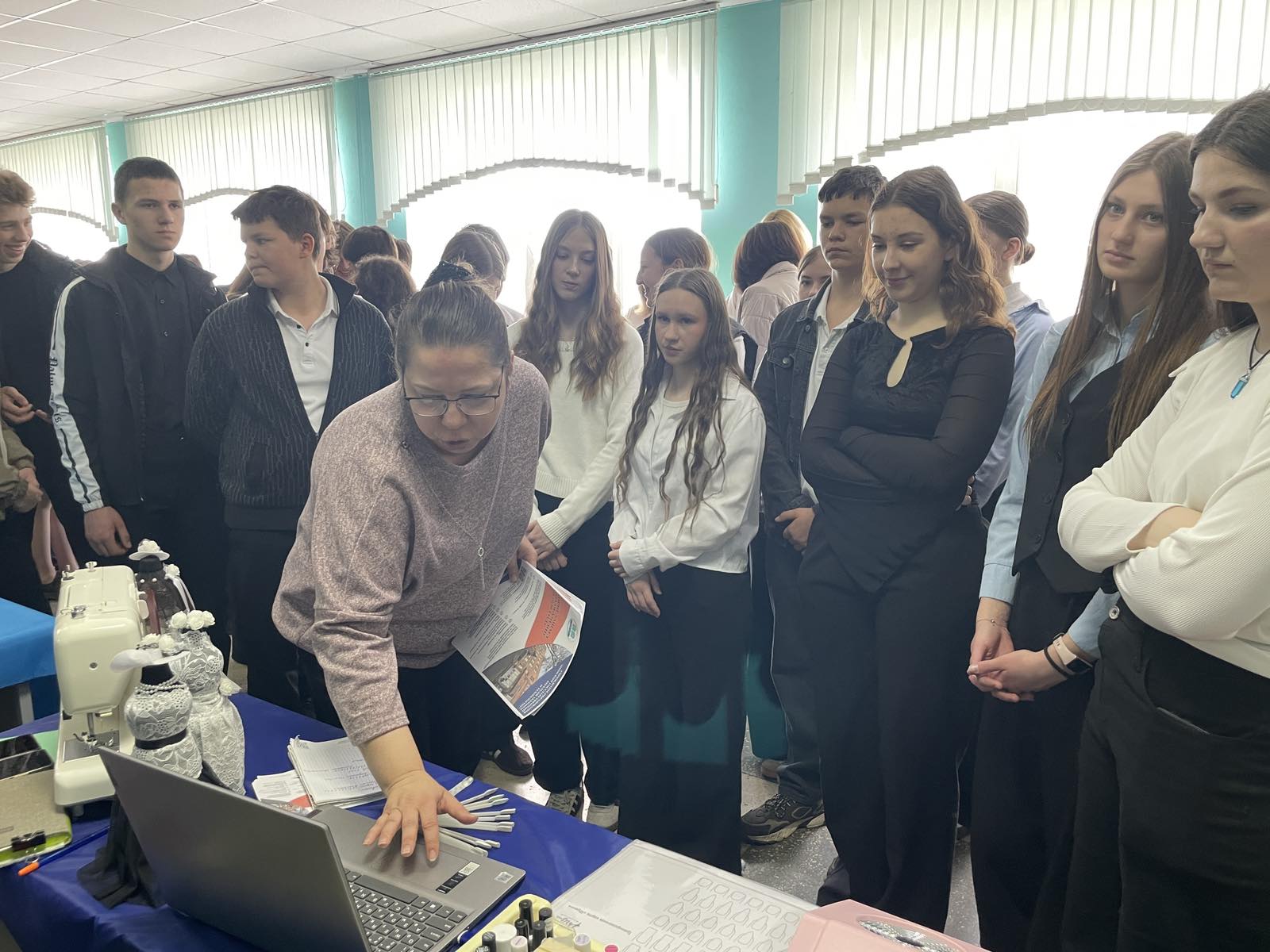 15 и 16 апреля педагоги нашего учебного заведения приняли участие в общереспубликанской акции «Молодежная ярмарка вакансий», которая прошла в Ивацевичском районе. Мероприятия состоялись в Ивацевичской средней школе №3 и Телеханской средней школе имени К.К. Рокоссовского. Для учеников 9–11 классов были организованы интерактивные мастер-классы от колледжа по востребованным профессиям: швея, мастер по маникюру и парикмахер. Школьники не только узнали о профессиях, но и попробовали свои силы на практике, что помогло им лучше понять, подходит ли им выбранное направление. Также представители колледжа рассказали о плане приема и правилах поступления в 2026 году.