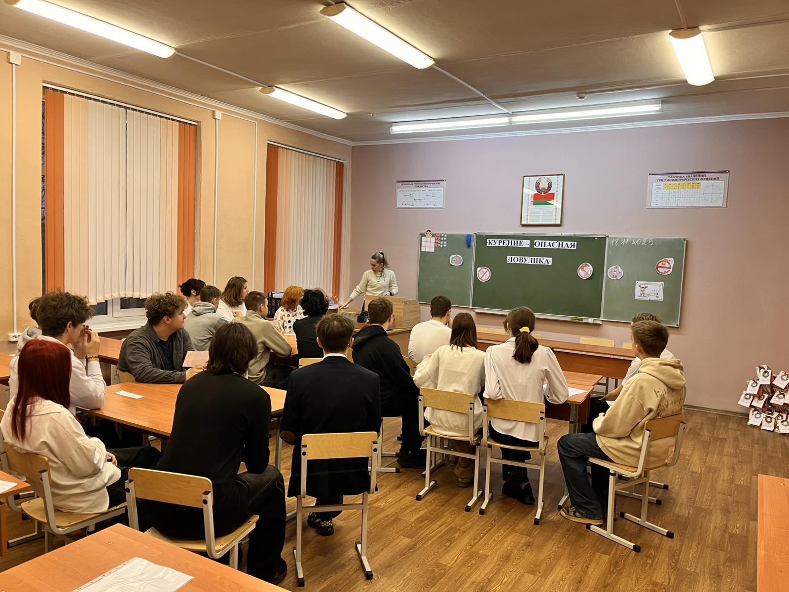 18 ноября в рамках проводимой декады Комплекса «О дополнительных мер профилактики правонарушений несовершеннолетних», которая проводится с 10 ноября по 15 декабря 2025 года Пинским ГОВД, в колледже прошел открытый кураторский час «Курение - опасная ловушка», который провела куратор группы Е.В. Самсонова с учащимися группы Б 261-24.